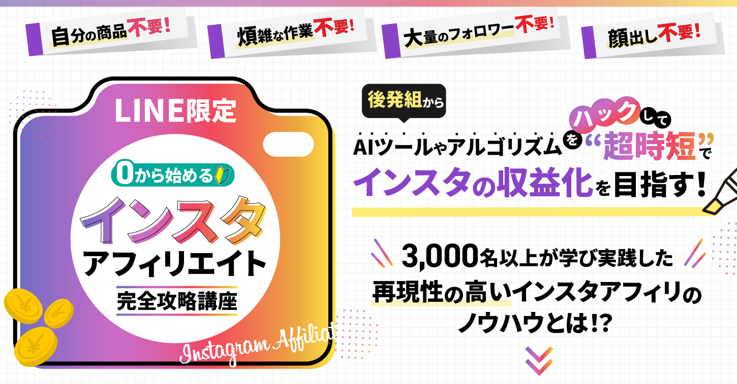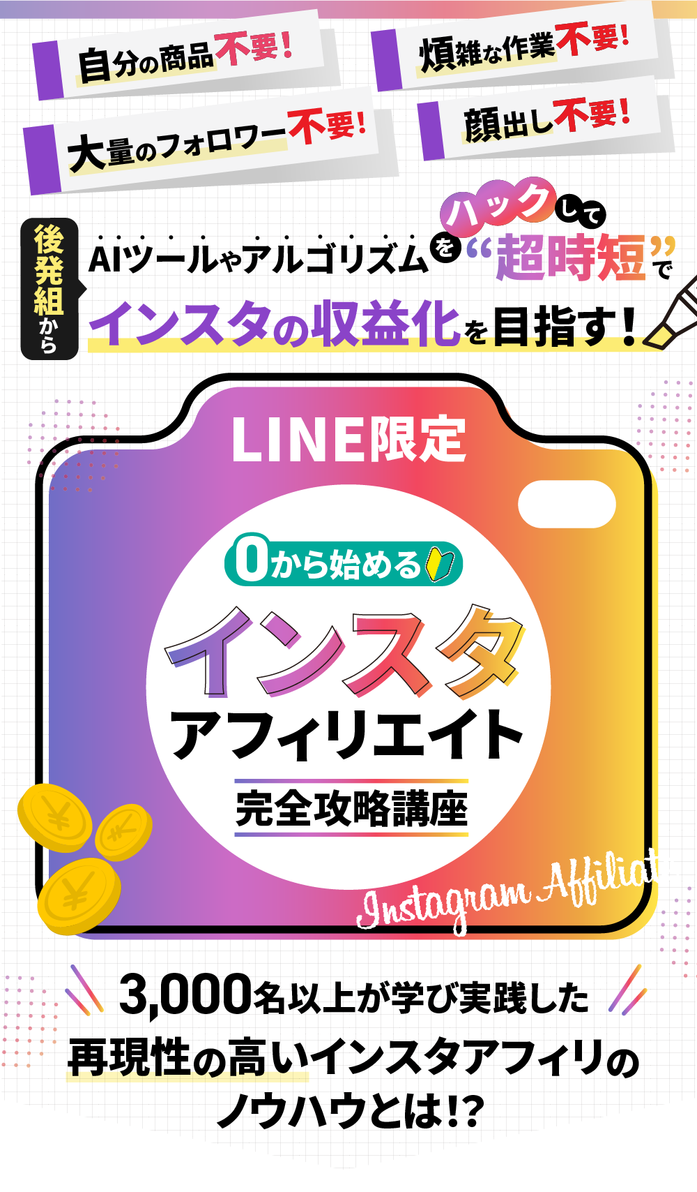 だからこそ、後発組が最短でインスタに参入するにはインスタアフィリエイトが最適なのです。