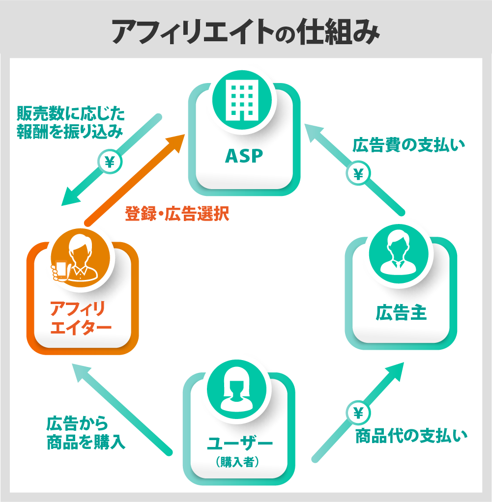 オンラインで商品やサービスを宣伝し、その宣伝から売り上げが生まれた時に報酬をもらうシステムのこと。
